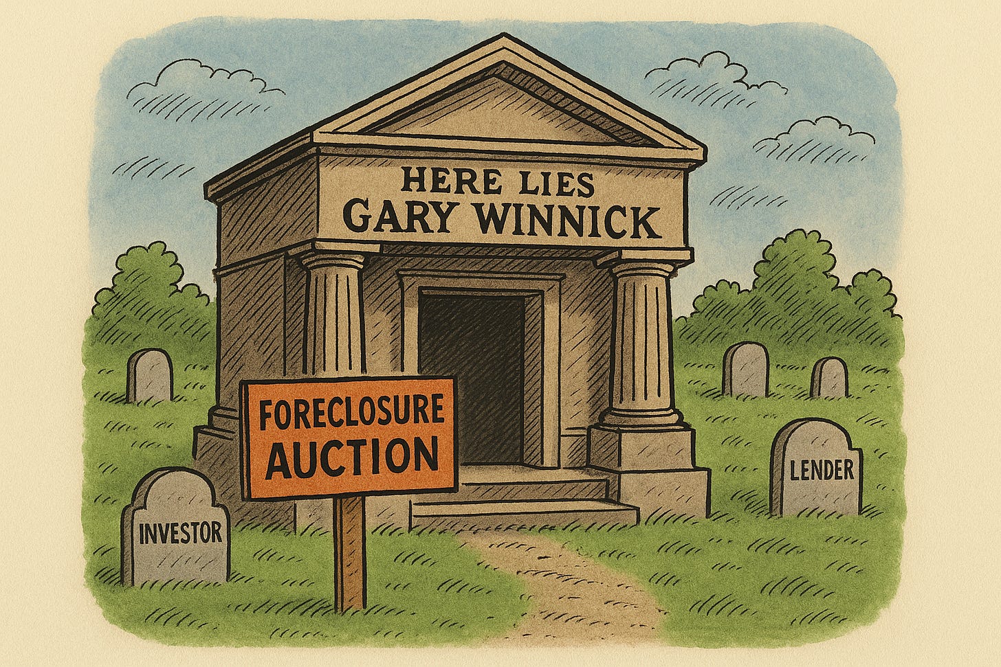 Gary Winnick, the late founder of a failed telecom startup, sacks his lender from beyond the grave