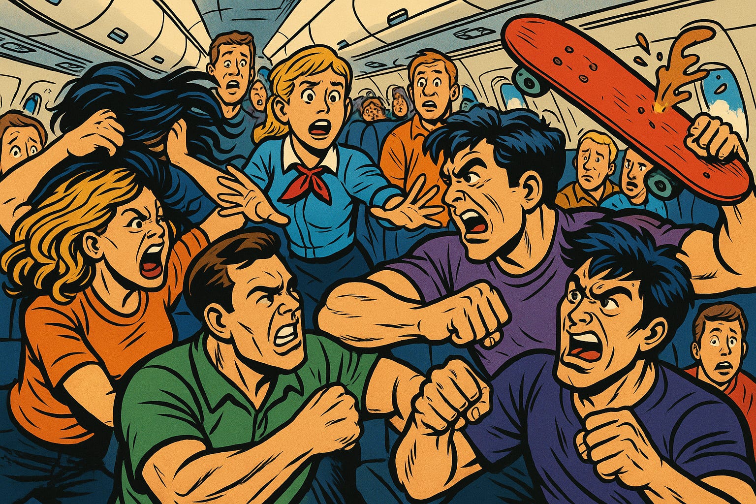 You could find yourself buckled up beside a guy who bites. Or a freak who believes he’s being followed by “Satan’s disciples,” eats rosary beads and attacks flight attendants. Or a “Tony Hawk wannabe” menacing passengers and flight attendants with his skateboard – until finally zip-tied only to break free like a suspense-movie villain. (Duct tape and zip ties are now standard equipment on every flight.)