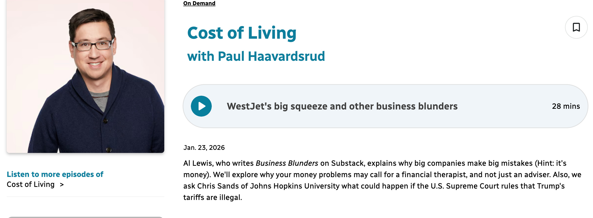 Click here to listen to CBC’s Cost of Living, a show you might find similar to NPR’s Planet Money.